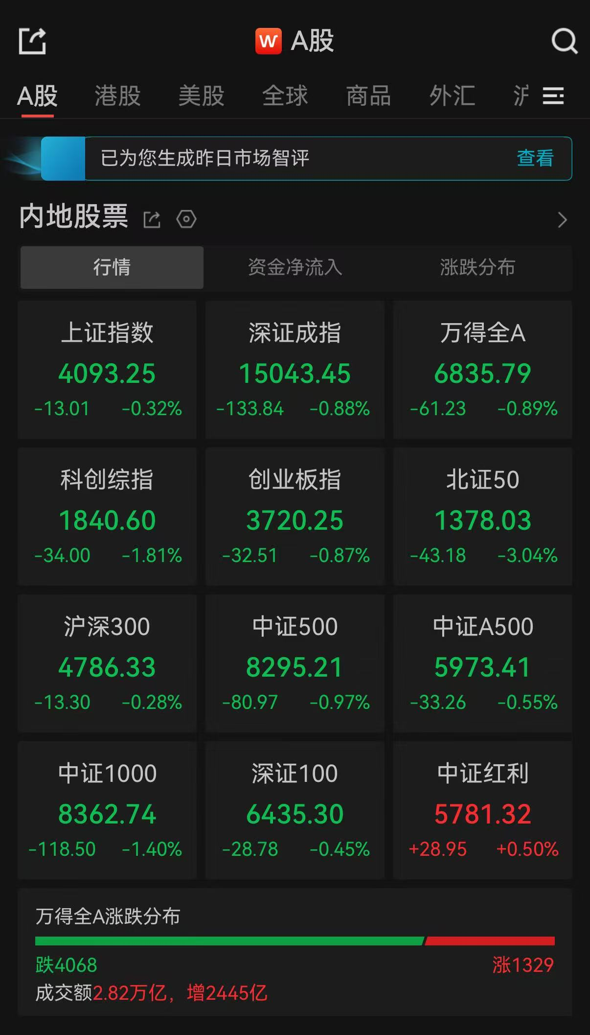A股收评:超4000只个股飘绿,三大指数集体收跌
